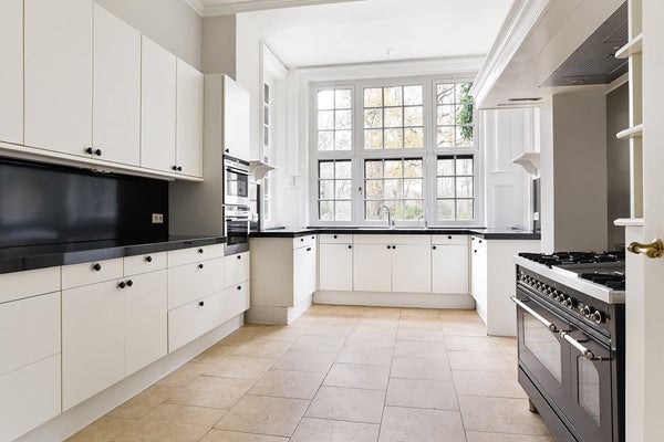 Een grote gezinskeuken biedt voldoende ruimte voor dagelijks gebruik en kan ook gemakkelijk formele gelegenheden aan. De begane grond omvat ook een wasruimte en twee garderobekamers. Twee aparte trappen bieden toegang tot de kelder, evenals de eerste en tweede verdieping.
