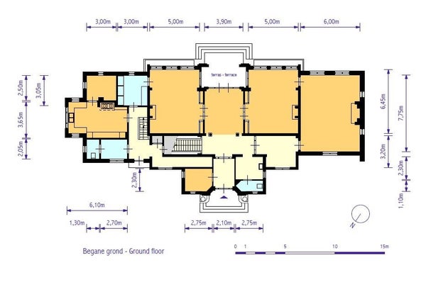 Een prachtige entree, perfect aansluitend bij de charme van een elegant landhuis, verwelkomt u in een grote centrale hal die van de voorkant van het huis helemaal naar de tuin loopt. Aan de achterzijde strekt een ruime 170 m² groot terras zich over de volle breedte van het huis, ideaal voor vermaak en genieten van zomerse barbecues.