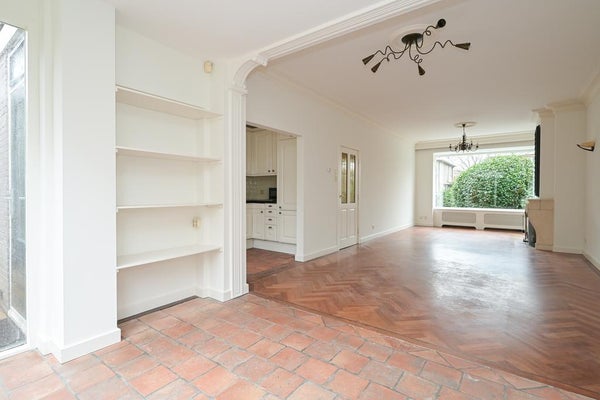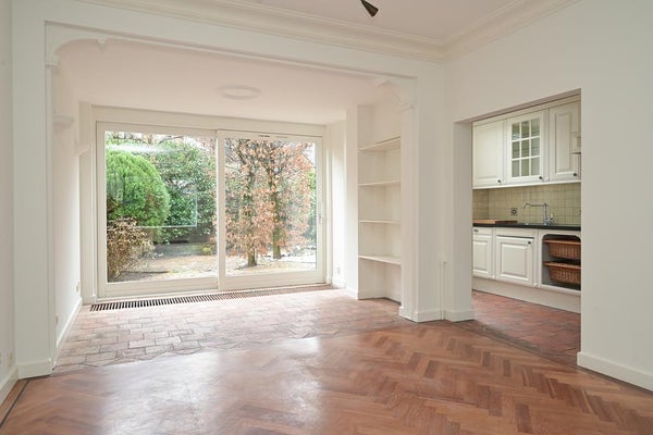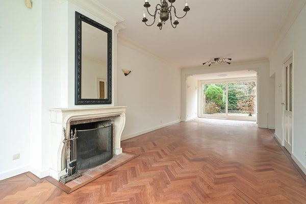 - Uitgebouwde woon-/eetkamer met parketvloer en open haard