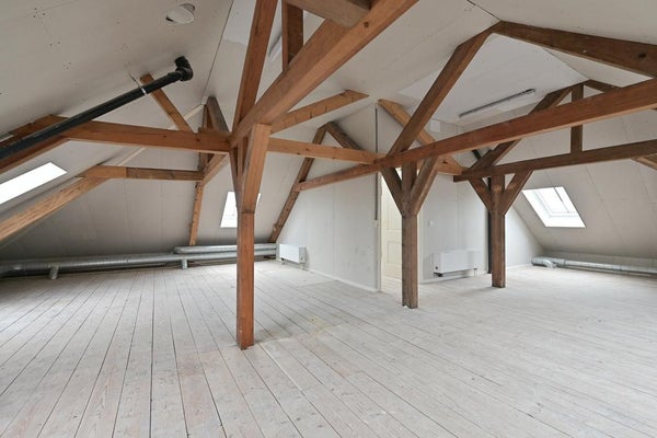 Een grote open ruimte die kan dienen als hobbykamer, gastenaccommodatie of thuiskantoor.