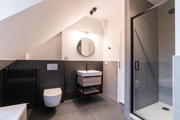 Er zijn twee toiletten aanwezig, waarvan één voorzien is van een fonteintje en een wandcloset, wat extra comfort biedt voor dagelijks gebruik.
