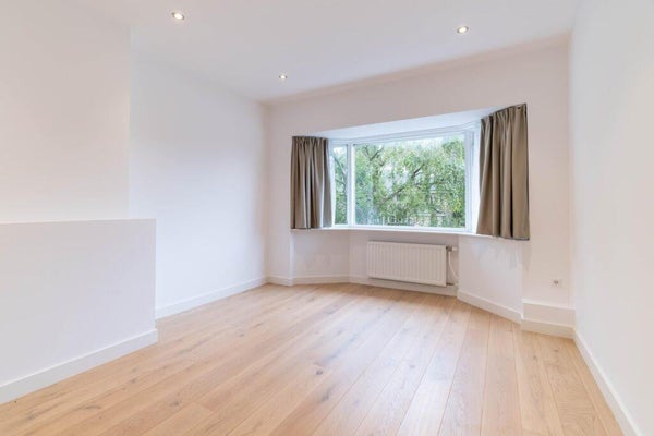 De lichte en ruime woonkamer is nog deels uitgevoerd in de klassieke en-suite stijl, wat een bijzonder sfeervol karakter geeft aan deze leefruimte.
