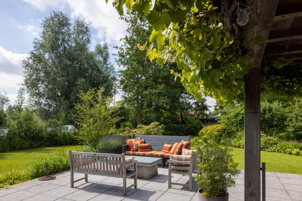 De tuin is net zo mooi als het huis, zeer ruim en met een aantal fijne loungeplekken, mogelijkheid om voor je huis te zwemmen