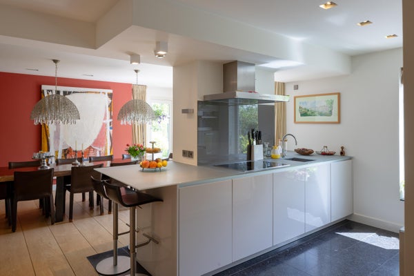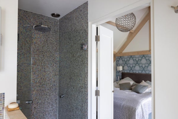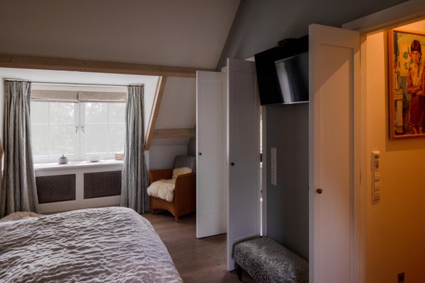 Wat direct opvalt is de sfeervolle, riante woonkeuken en woonkamer met open haard – het kloppend hart van het huis. Hier komen gezelligheid en functionaliteit samen. Koken terwijl je uitkijkt over het water, dineren met de hele familie of borrelen met vrienden: het kan allemaal. De woonruimtes zijn licht en ruimtelijk, met grote raampartijen die het uitzicht omarmen en het buitenleven naar binnen halen.