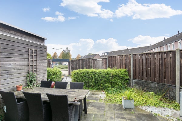 Buiten een royale tuin voor ontspanning, terwijl een privégarage zorgt voor veilig parkeren en extra opslagruimte.