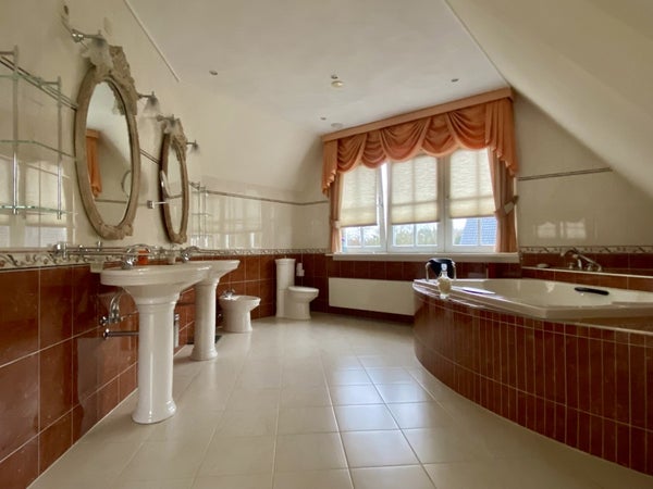 Op de eerste etage van dit gedeelte van de woning vindt u 3 slaapkamers, waarvan 1 voorzien van eigen badkamer met jacuzzi en een aparte kamer met een walk-in closet.