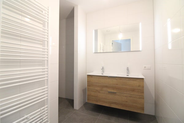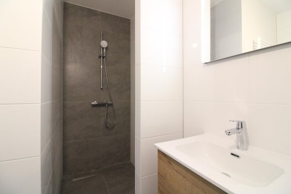 Achter de woonkamer gelegen hebt u de toegang tot de benedenslaapkamer van ca. 15m2, met aangrenzend de badkamer bestaande uit een inloopdouche en dubbele wastafel met ombouw. Het toilet is separaat te bereiken, alsmede een handige bergruimte onder de trap met een aansluiting voor de wasmachine.