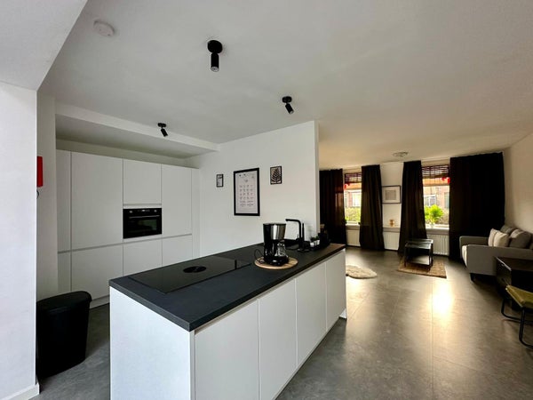 De heerlijk ruime woonkamer van ca. 40 m² biedt volop lichtinval en beschikt over een moderne open keuken met kookeiland.