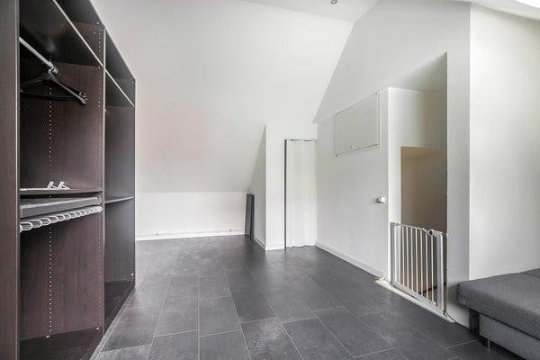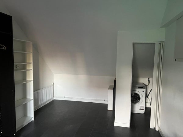 Ruime zolderverdieping / 4e & nog een master bedroom met veel licht dankzij een uitgebouwd dak. De kamer is uitgerust met IKEA slaapbank en veel IKEA Pax kasten/bergruimte. Er is ook een aparte plek voor wasmachine en droger (aansluitingen) aanwezig.