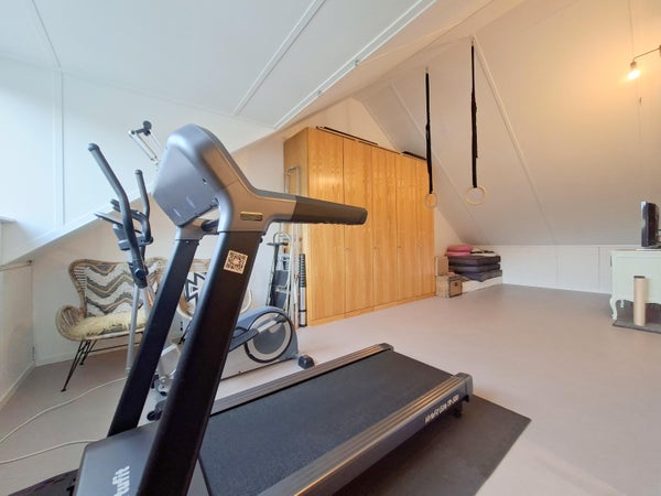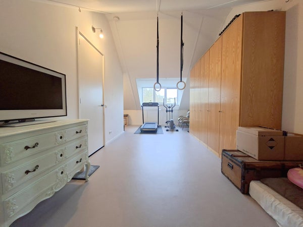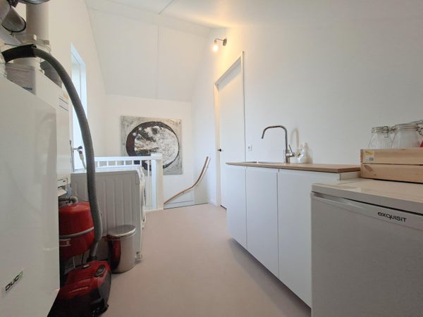 De tweede verdieping beschikt over een overloop met wasmachine en droger. Via een deur is de zolder bereikbaar.