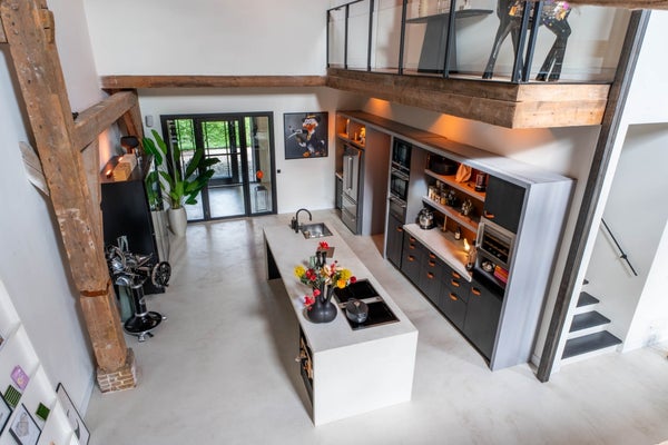 Vanuit de hal komt u in de prachtige living met vide en woonkeuken met de authentieke elementen van de Vlaamse schuur. De sfeervolle woonkeuken en de living staan met elkaar in open verbinding.