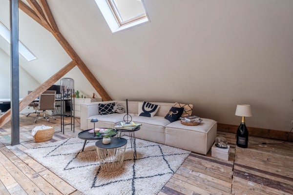 In 2020 is deze Vlaamse schuur opgesplitst in drie bijzonder luxueuze woningen. Dit object is door de huidige eigenaar op een waanzinnig fraaie en bovengemiddelde wijze compleet gebouwd met behoud van authentieke details.