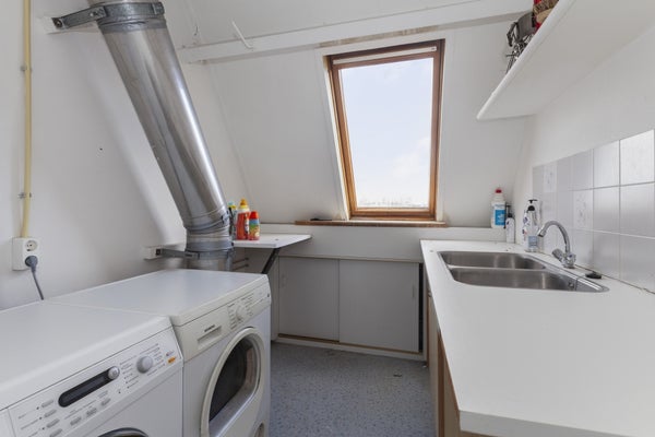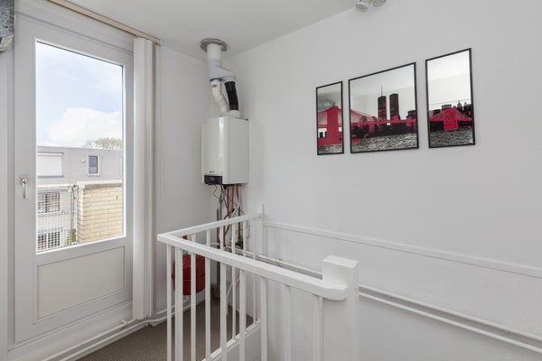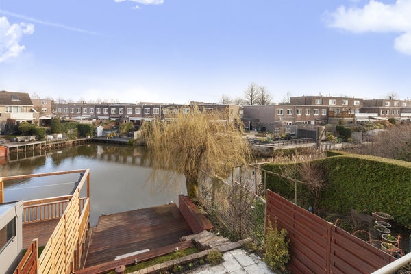 Via de hal kom je in een tuingerichte lichte woonkamer (de tuin is gelegen op het Noordoosten en gelegen aan het water) met aan de voorzijde van de woning een grote lichte keuken, voorzien van diverse apparatuur zoals een inductiekookplaat, combi-oven, vaatwasser en een koel- vriescombinatie. Via de trap kom je op de eerste verdieping met twee slaapkamers, een badkamer voorzien van douchecabine, wastafel, hoekbubbelbad, designradiator en een tweede toilet. Op de tweede verdieping ligt de 3e (de grootste) slaapkamer en een wasruimte met wasmachine en -droger en aanrecht met wasbak. Tevens is hier ook de toegang naar het dakterras, gelegen op het zuidwesten.