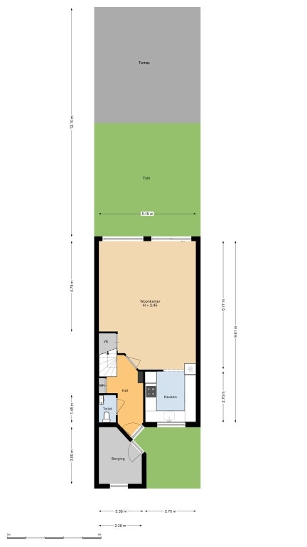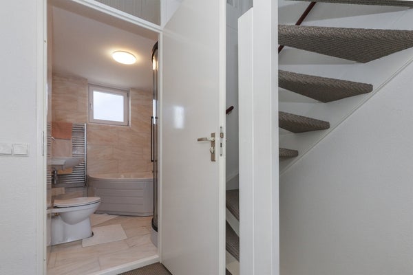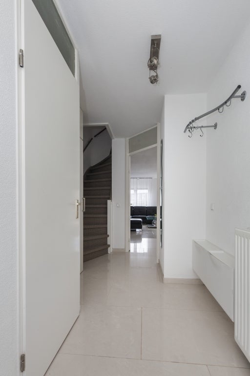Via de op het Zuidwesten gelegen voortuin (in voortuin gelegen berging niet beschikbaar) stapt u in de hal van deze ruime woning. Hier bevindt zich ook het moderne toilet en de trap naar de eerste verdieping.