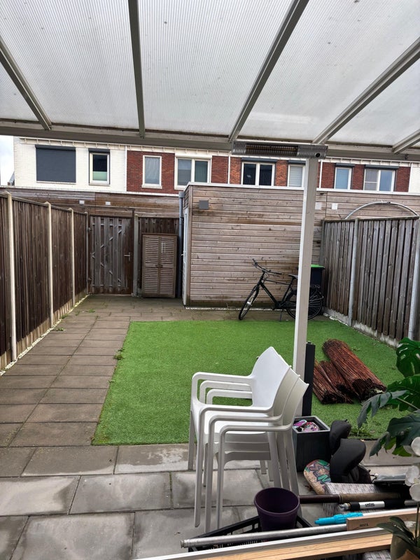 De ruime achtertuin is gelegen op het zuid-oosten, wat zorgt voor veel zonlicht gedurende de dag. De tuin is perfect voor een gezellig terras of een speelruimte voor kinderen.