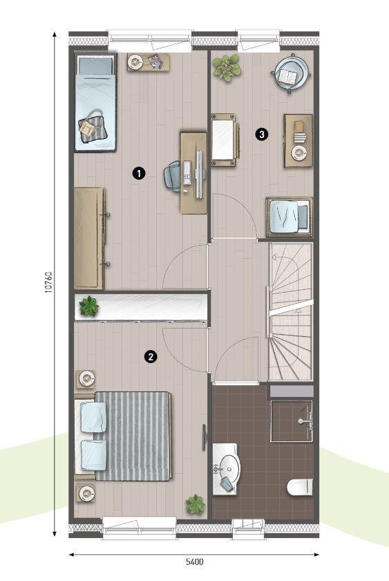 De zolder beschikt over twee slaapkamers, ideaal als werkkamer of hobbyruimte.