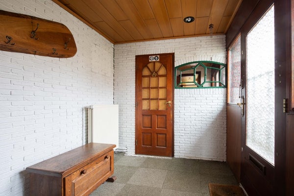 Vanuit de badkamer loopt u door naar de bijkeuken. Hier bevinden zich de aansluitingen voor de wasmachine en de droger en de opstelling van de cv-ketel.