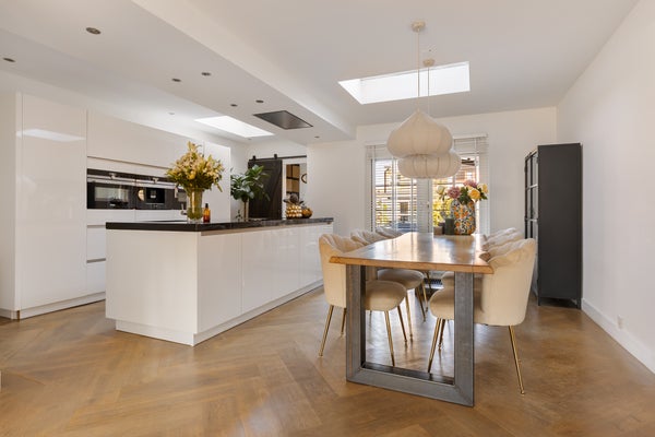 Welkom aan de Margrietstraat 14 in Aalsmeer, dichtbij Amstelveen. Dit ruime eengezinshuis van circa 138 m² heeft vier slaapkamers en een prachtige zonnige achtertuin, perfect voor kinderen. De woonkamer met houten visgraatvloer en houtkachel zorgt voor sfeer en comfort. De open keuken is van hoogwaardige Duitse kwaliteit, compleet met moderne Siemens apparatuur. De gehele woning is onlangs onderhoudsarm gerenoveerd. Buiten vindt u zowel een gezellige voortuin als een royale achtertuin met een nieuw terras en een kindvriendelijk sierwater. Op de eerste verdieping zijn drie slaapkamers en een nette badkamer met dubbele wastafel. De zolderverdieping is ingericht als vierde slaapkamer met veel licht. De buurt is kindvriendelijk met scholen en supermarkten dichtbij. Geniet van de nabijheid van het Amsterdamse Bos en het water van de Westeinderplassen.