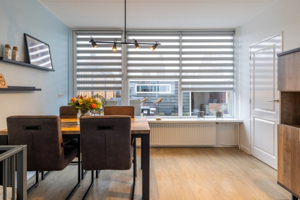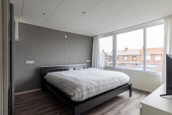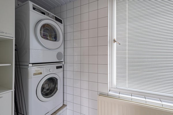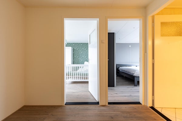 Op de eerste verdieping vind je twee royale slaapkamers met laminaten vloeren. De derde slaapkamer heeft plaatsgemaakt voor een ruime badkamer. Deze beschikt over alles wat je nodig hebt: een ligbad, douche, toilet en wastafel. Douchen doe je hier in het bad, ideaal als je jonge kinderen hebt. Gemak en waterpret in één. Een pluspunt is de ruimte voor de wasmachine en droger. Boven is het ingericht met comfort in gedachte. En zoals we gewend zijn bij deze woning, ook hier ziet het er super netjes uit.