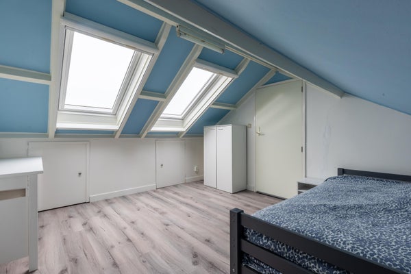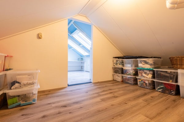 Waar vroeger enkel en alleen de vlizotrap je naar boven bracht, is er nu een vaste trap naar de tweede verdieping gerealiseerd. Hier vinden we de derde slaapkamer. Ideaal voor gezinnen of juist als werk- of hobbyruimte. Want laten we eerlijk zijn, een extra kamer komt altijd van pas. In 2023 is deze kamer helemaal compleet gemaakt: er is dakisolatie toegepast, er zijn twee nieuwe Velux dakramen geplaatst en om het af te maken horren en verduisterende rolgordijnen geplaatst. Ook vinden we aan de voorzijde bergruimte en de Intergas CV ketel uit 2006.