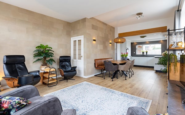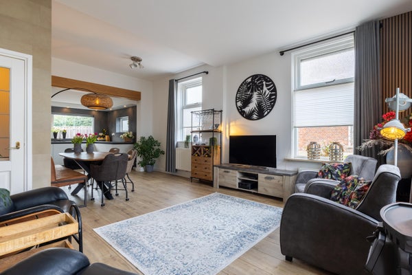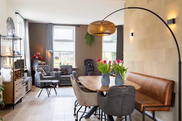 Het hart van deze woning is zonder twijfel de woonkeuken die voorzien is van alle benodigde apparatuur en klaar is voor de volgende chef! Het is zo’n plek waar gezelligheid door de dag heen als vanzelf ontstaat door te beginnen met een kop koffie en de krant. Later op de dag schuiven familie of vrienden graag aan en blijven geregeld hangen aan de riante eettafel. Goede gesprekken, gelach en nog een kop koffie (of een wijntje) zijn hier heel normaal. Ook de ruime woonkamer met gashaard aan de voorzijde is een fijne plek om na het avondeten nog even te ontspannen voordat de slaapkamers worden opgezocht.