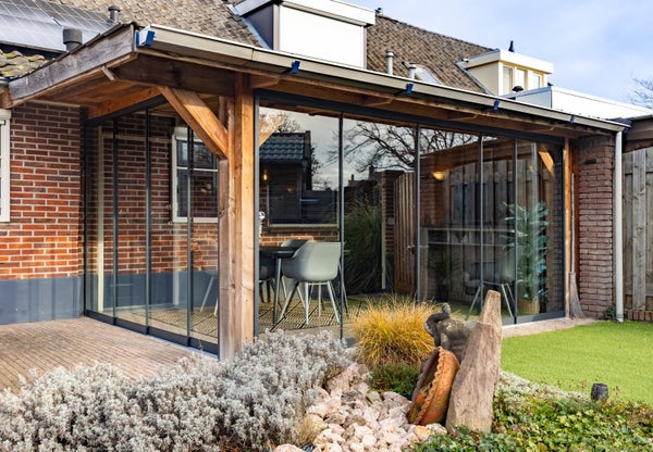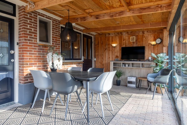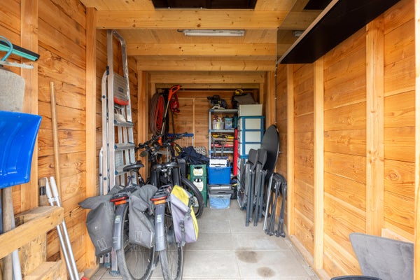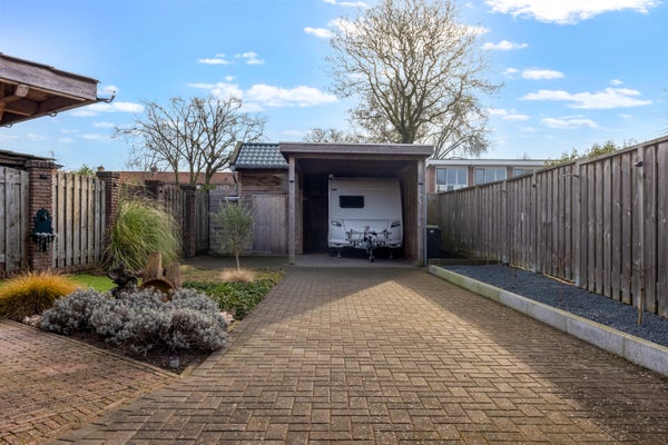 Buitenleven schrijven we bewust met wat uitroeptekens want met 400 meter perceel gunstig gesitueerd op het zuiden is het hier heel goed toeven. Het geheel is mooi omsloten door schuttingen die in de avonduren in het licht worden gezet. Verschillende borders met beplanting, een groene grasmat en genoeg terrasruimte vullen elkaar prima aan. De carport is ideaal voor de fanatieke reiziger die z’n caravan of camper graag het hele jaar door bij huis heeft staan. De naastgelegen schuur is ruim genoeg voor je fietsen en het nodige gereedschap. Je zit hier natuurlijk ook super centraal t.o.v. het gezellige centrum, het treinstation, scholen en verschillende zorgaanbieders zoals apotheek en huisarts. Het zonnetje breekt net door en we strijken even neer onder de fraaie veranda die in 2023 is gerealiseerd. Een ontzettend leuke plek om het hele jaar door te genieten van het uitzicht op je heerlijk vrije achtertuin!