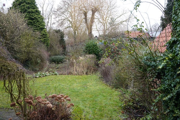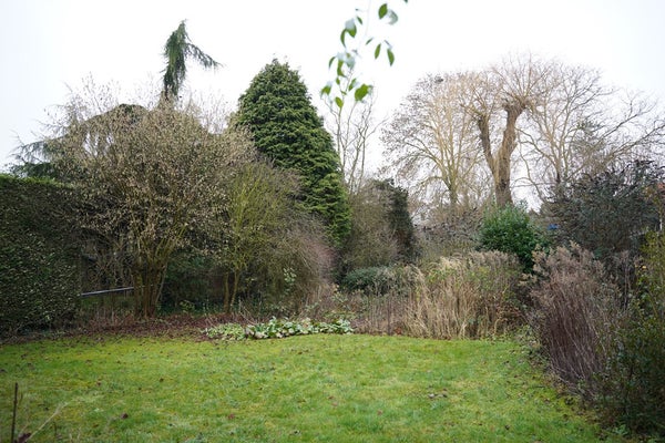 De achtertuin is een echte verrassing. Deze is verdiept aangelegd, volledig omheind en rijk aan groen. Door de ligging op het zuidwesten geniet je hier van veel zon, terwijl het groen zorgt voor een fijne, beschutte sfeer.