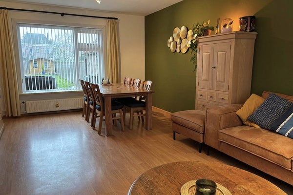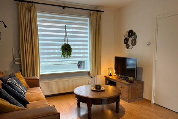 Via de voordeur stap je binnen in de hal met meterkast en toilet. De woonkamer voelt direct prettig aan: licht, knus en sfeervol, met een laminaatvloer die het geheel rustig maakt. Hier is ruimte voor een fijne zithoek én een eettafel.