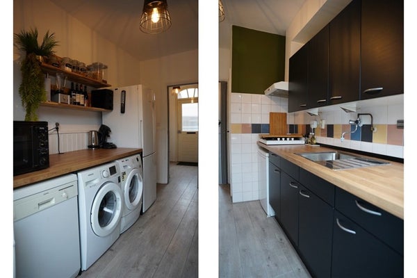 De keuken is praktisch ingericht en voorzien van apparatuur die deels achterblijft. Vanuit hier heb je toegang tot de trapkast en de tuin. Alles is overzichtelijk en functioneel, precies wat je zoekt in een instapklare starterswoning.