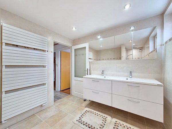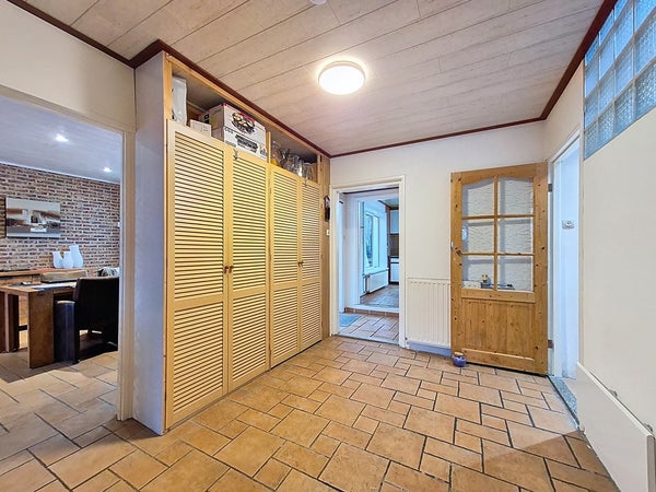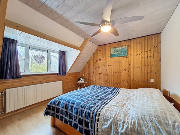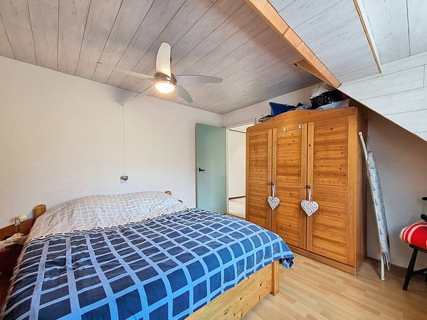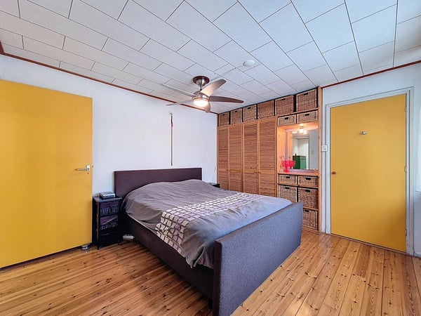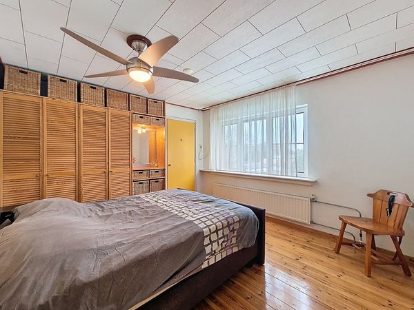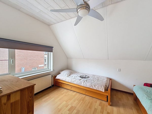 De eerste verdieping wordt betreden vanuit de hal via de nieuw beklede trap. De ruime overloop biedt toegang tot de drie slaapkamers en de badkamer. We beginnen met de kleinste slaapkamer wat nog steeds een royale kinderkamer is met genoeg plaats voor een éénpersoonsbed, een kledingkast en een bureau. De twee andere slaapkamers zijn goed vergelijkbaar met elkaar en zijn beiden groot genoeg voor een tweepersoonsbed en een kledingkast. Met de badkamer heb je ook niks te klagen. Deze is ook recent vernieuwd en voorzien van veel ruimte. Zo kan je genieten van de dubbele wastafel, de handdoekradiator, het toilet en de ruime inloopdouche.