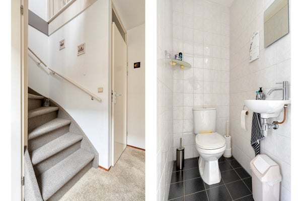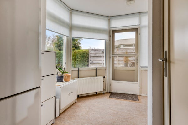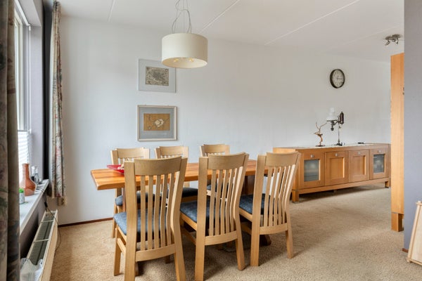 Begane grond: Bij binnenkomst via de entree met meterkast en toiletruimte ervaart u direct de lichte en open sfeer van de woning. De royale doorzonwoonkamer biedt een weids uitzicht over het water en de groenstrook. De open keuken is praktisch ingericht in een hoekopstelling en staat in directe verbinding met de eethoek. Aansluitend aan de keuken vindt u de ruime bijkeuken met witgoedaansluitingen en een doorgang naar de inpandige garage. Bijzonder detail: de fundering van de garage is destijds zo uitgevoerd dat deze eventueel kan fungeren als slaapkamer op de begane grond.