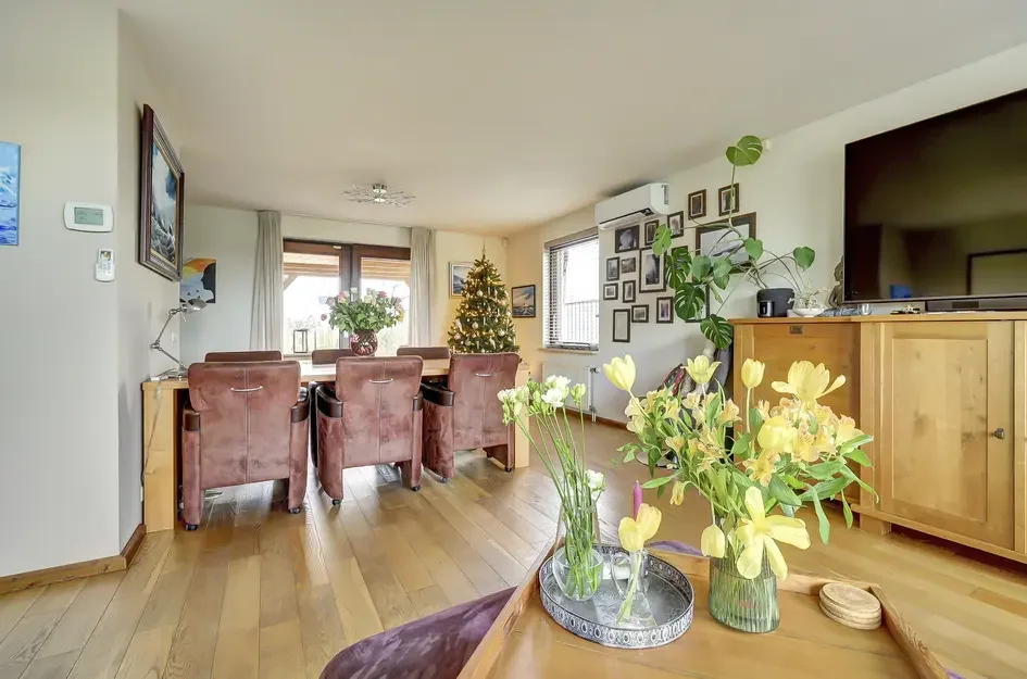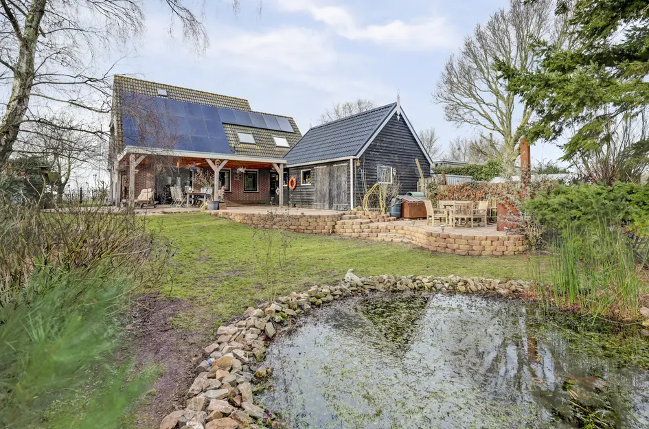 Deze vrijstaande woning biedt unieke mogelijkheden en is gelegen op 735 m² eigen grond, met daarnaast een perceel van 2.720 m² recht tegenover de woning. Dit extra perceel is geschikt voor paarden, een paardenstal, een siertuin of andere toepassingen. De woning heeft een prachtig uitzicht over de weilanden achter de woning, wat zorgt voor rust en privacy. De begane grond heeft een woonkamer met toegang tot de tuin, een half-open keuken met inbouwapparatuur, en een garage van 18,5 m². Op de eerste verdieping bevinden zich vier ruime slaapkamers en een badkamer. Bovendien is er op de zolder een bergvliering. Extra kenmerken zijn de aanwezigheid van airconditioning, zonnepanelen en voldoende parkeergelegenheid op eigen terrein.