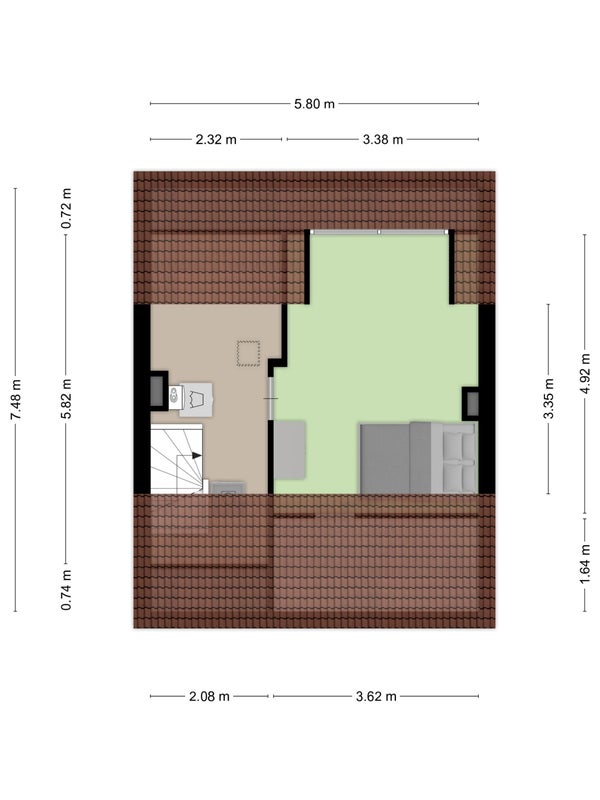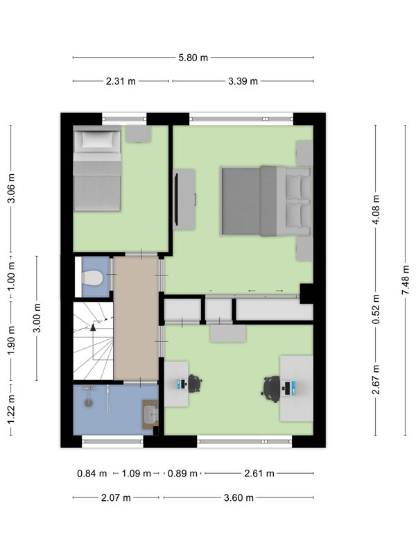 • De tussenwoning heeft een woonoppervlakte van 109 m² en beschikt over 5 kamers, waarvan 4 slaapkamers;