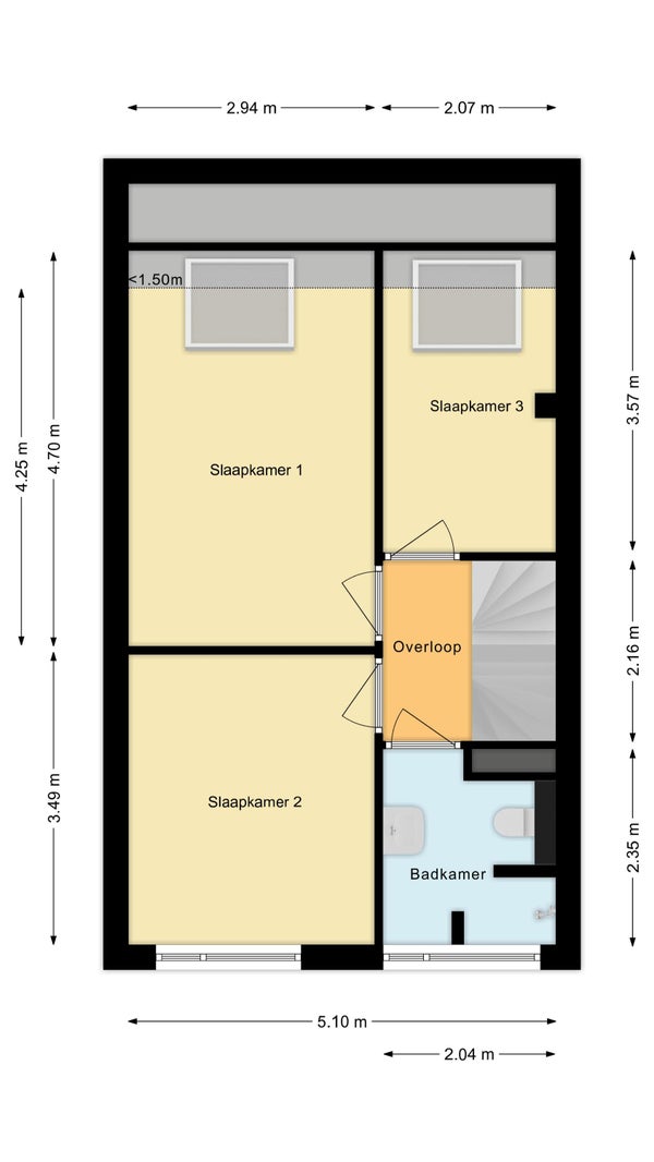 - De tussenwoning heeft een woonoppervlakte van 123 m² en beschikt over 5 kamers, waarvan 4 slaapkamers;