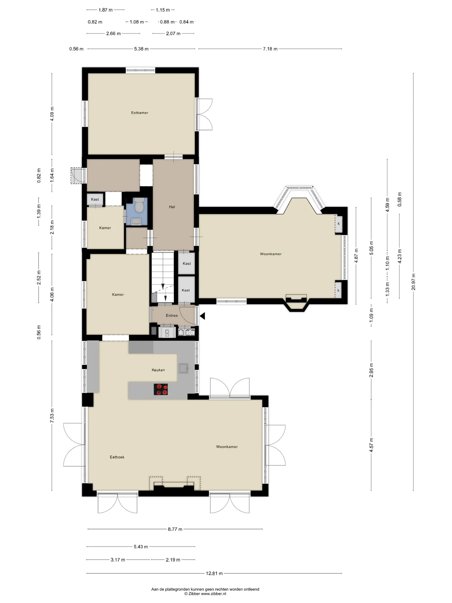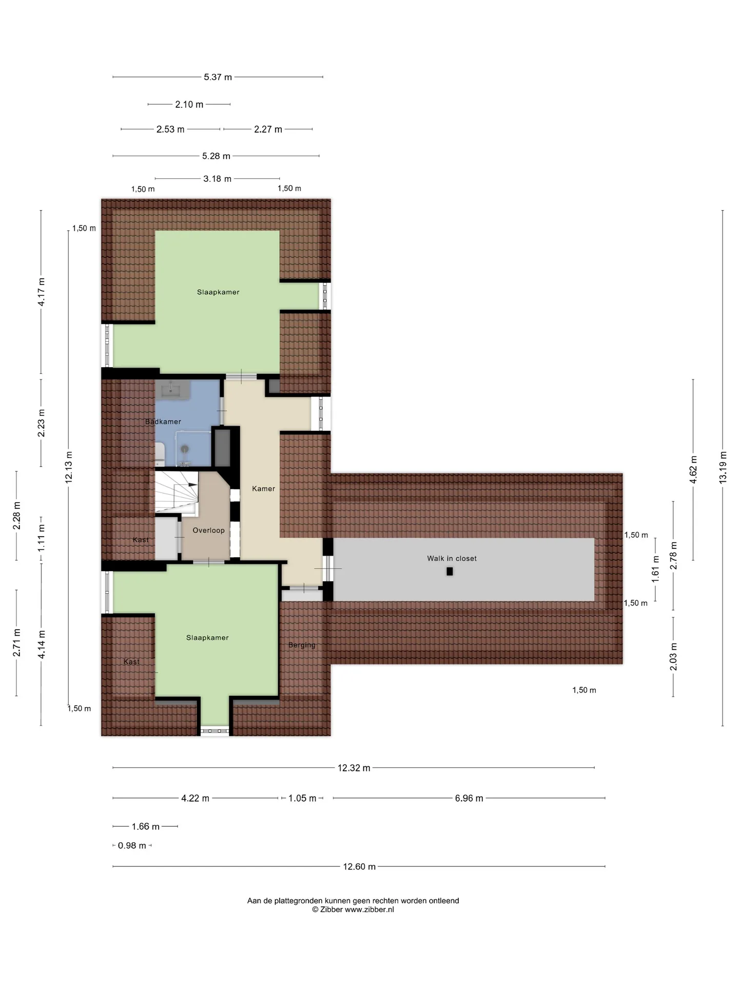 - De tussenwoning heeft een woonoppervlakte van 354 m² en beschikt over 6 kamers, waarvan 5 slaapkamers;