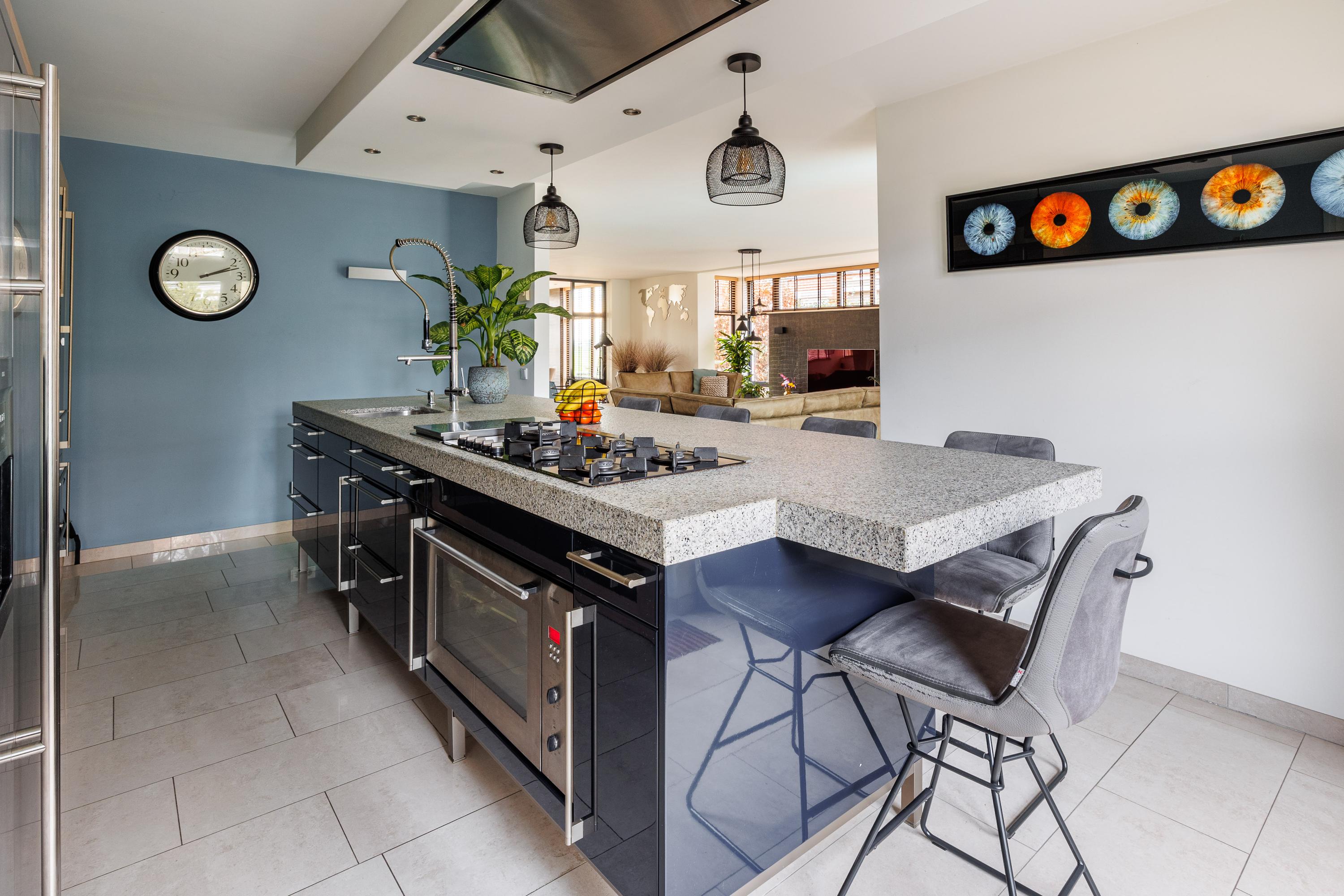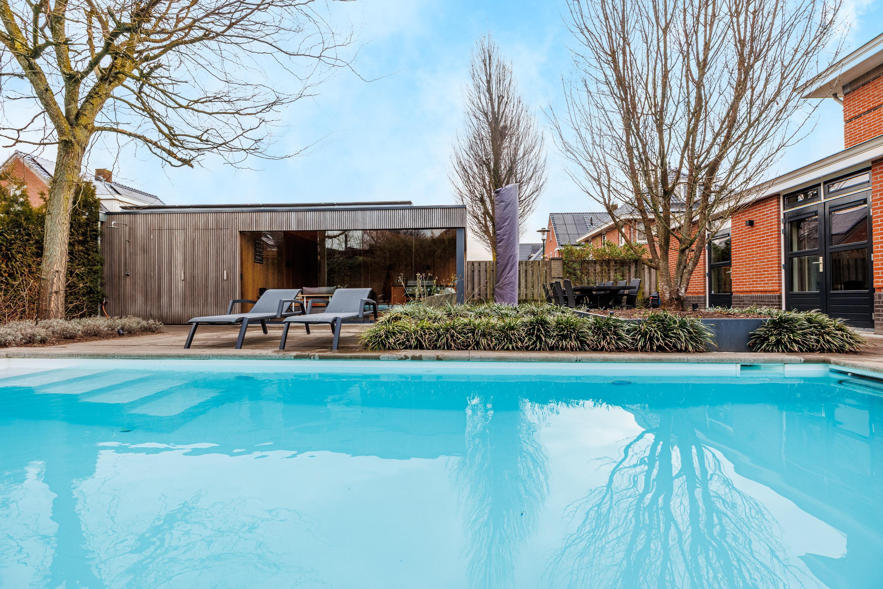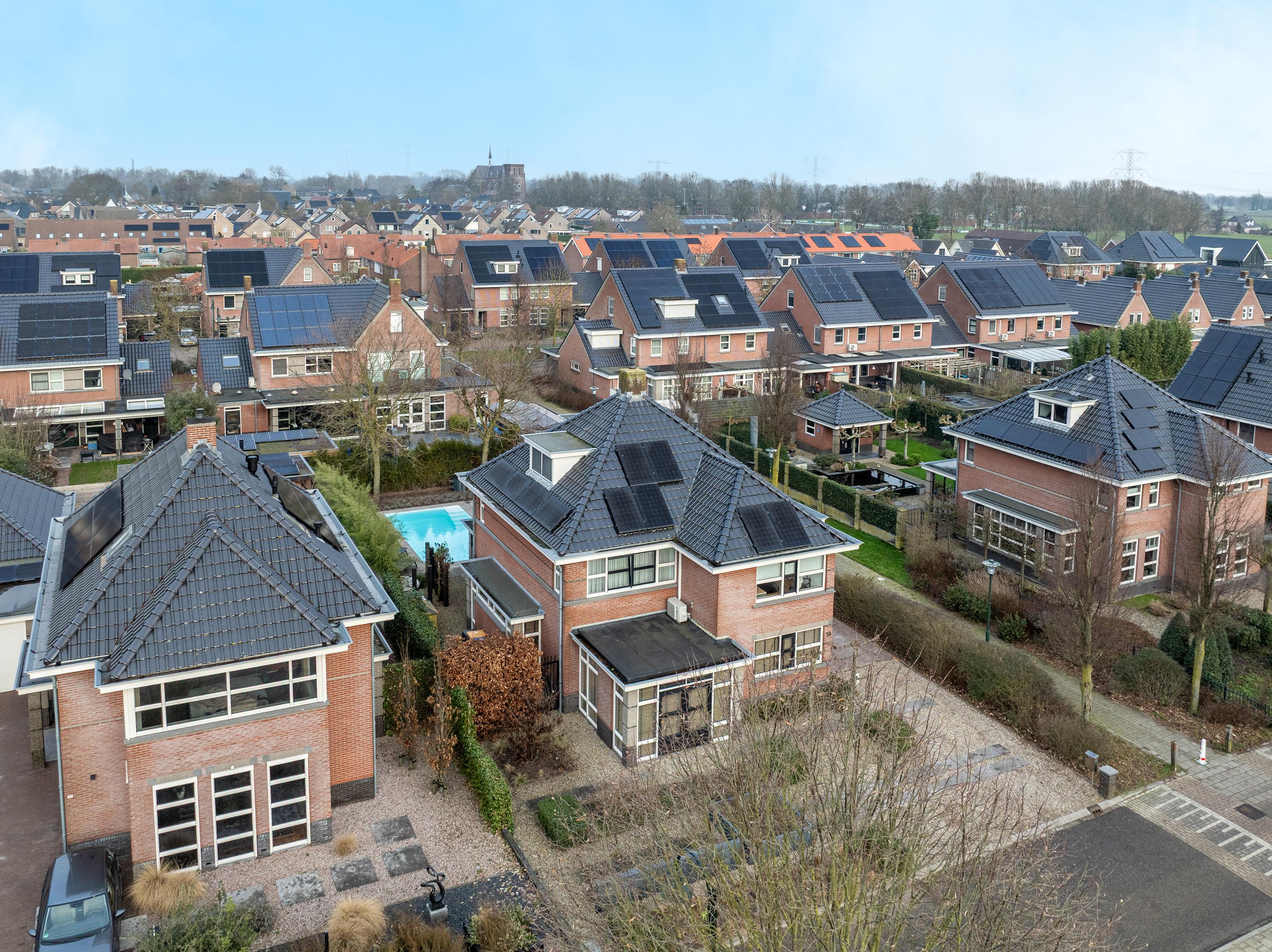 De Tolboom 19 in Afferden biedt een unieke combinatie van ruimte, luxe en comfort in een vrije, rustige omgeving. Deze vrijstaande villa, gebouwd in 2004, beslaat 225 m² op een perceel van 604 m² en beschikt over 9 kamers, waarvan 5 slaapkamers. De royale woonkamer met marmeren vloer en ingebouwde open haard staat in verbinding met de eetkamer en een prachtige serre. De luxe Siematic woonkeuken is volledig uitgerust en biedt plaats voor 6 personen. Op de eerste verdieping bevinden zich de slaapkamers, inclusief een master met inloopkast. De vernieuwde badkamer is een privé-spa met vloerverwarming en inloopdouche. De tuin met verwarmd zwembad en poolhouse is een oase van rust. De villa heeft energielabel A, zonnepanelen en vloerverwarming, wat bijdraagt aan het wooncomfort. Afferden staat bekend om zijn landelijke charme, met goede verbindingen naar nabijgelegen voorzieningen.