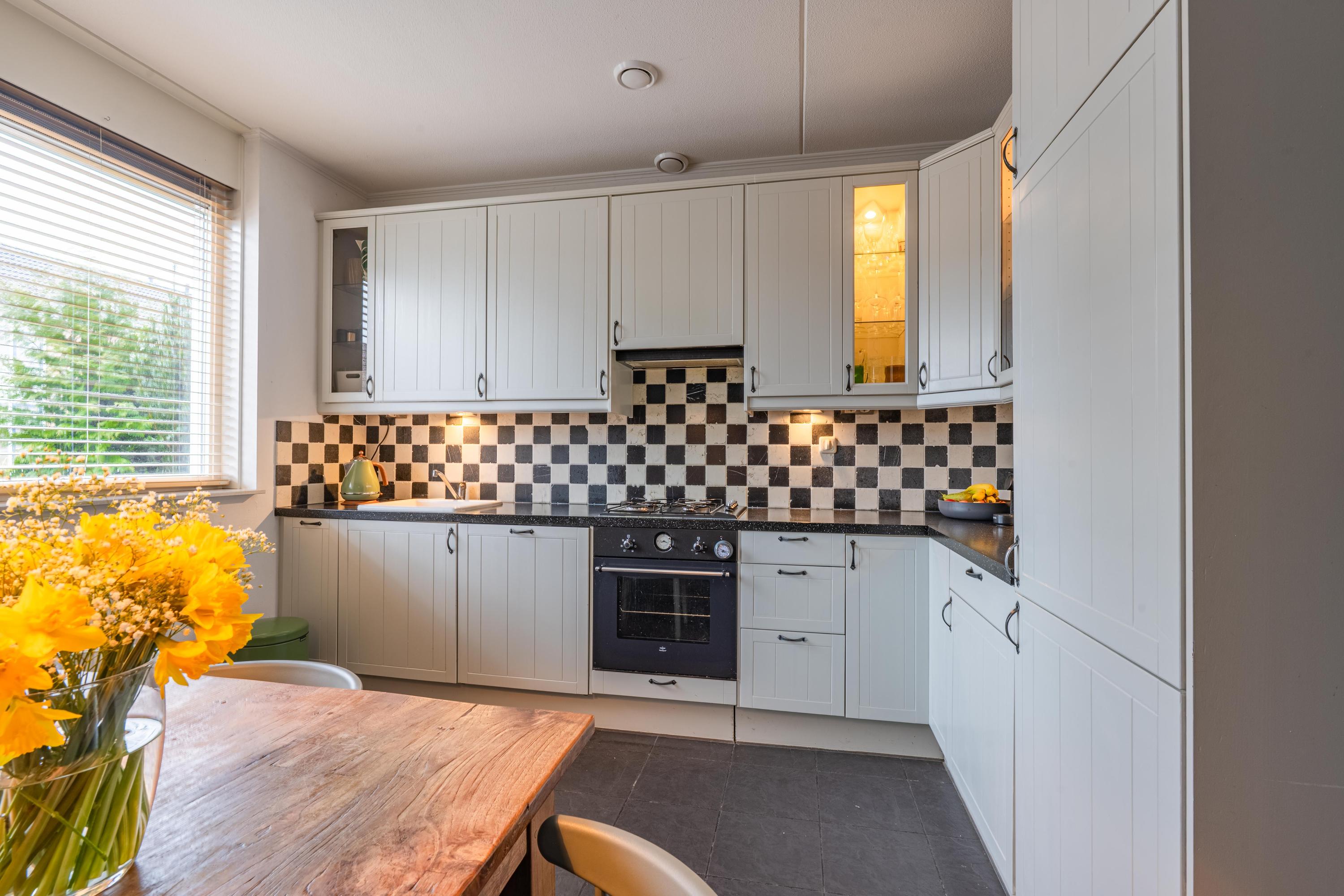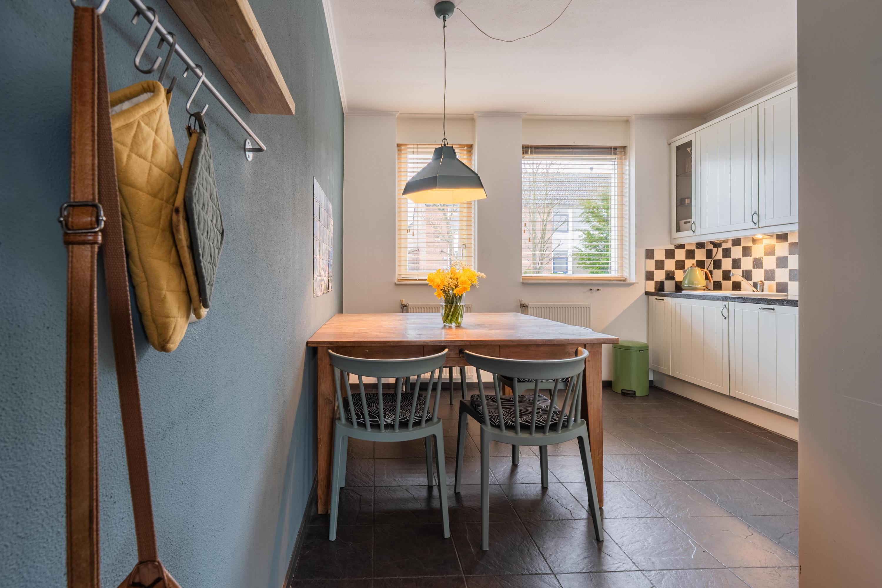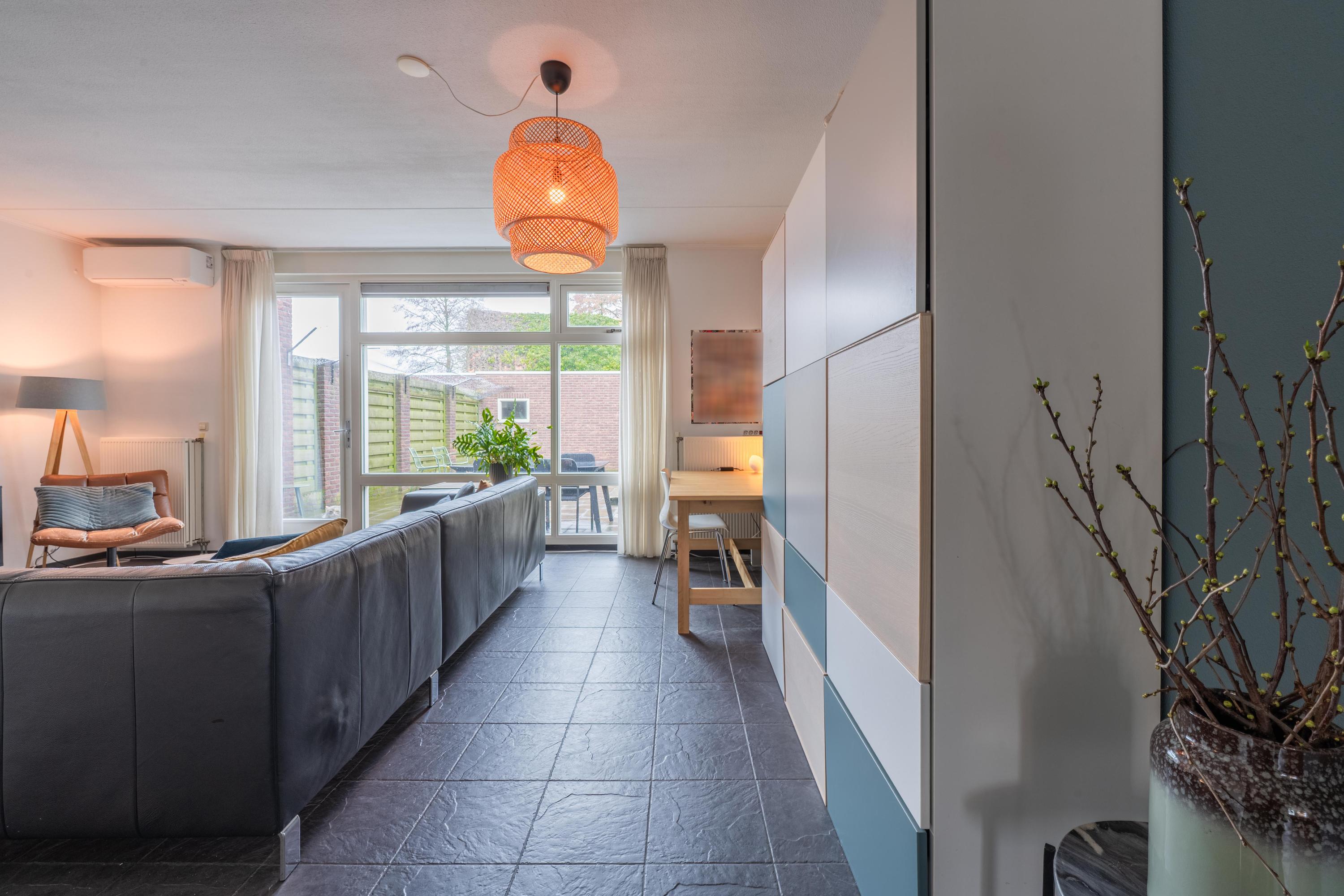 In het rustige dorp Afferden vindt u deze sfeervolle en royale tussenwoning uit 2006. Met een woonoppervlakte van 110 m² biedt de woning een lichte hal met meterkast, toilet en trapopgang. De tuingerichte woonkamer heeft mooie plavuizen, vloerverwarming en een airco. De keuken is uitgerust met moderne apparatuur. Via een loopdeur komt u in de diepe achtertuin, die veel privacy biedt en een royale, geïsoleerde stenen berging heeft. De eerste verdieping heeft drie slaapkamers en een nette badkamer. Een vaste trap leidt naar de zolder met bergruimte en voorzieningen voor wasmachine. De woning ligt aan een rustige weg, nabij voorzieningen in Druten en heeft goede bereikbaarheid naar Tiel en Nijmegen. Kortom, een fijne plek om te wonen!