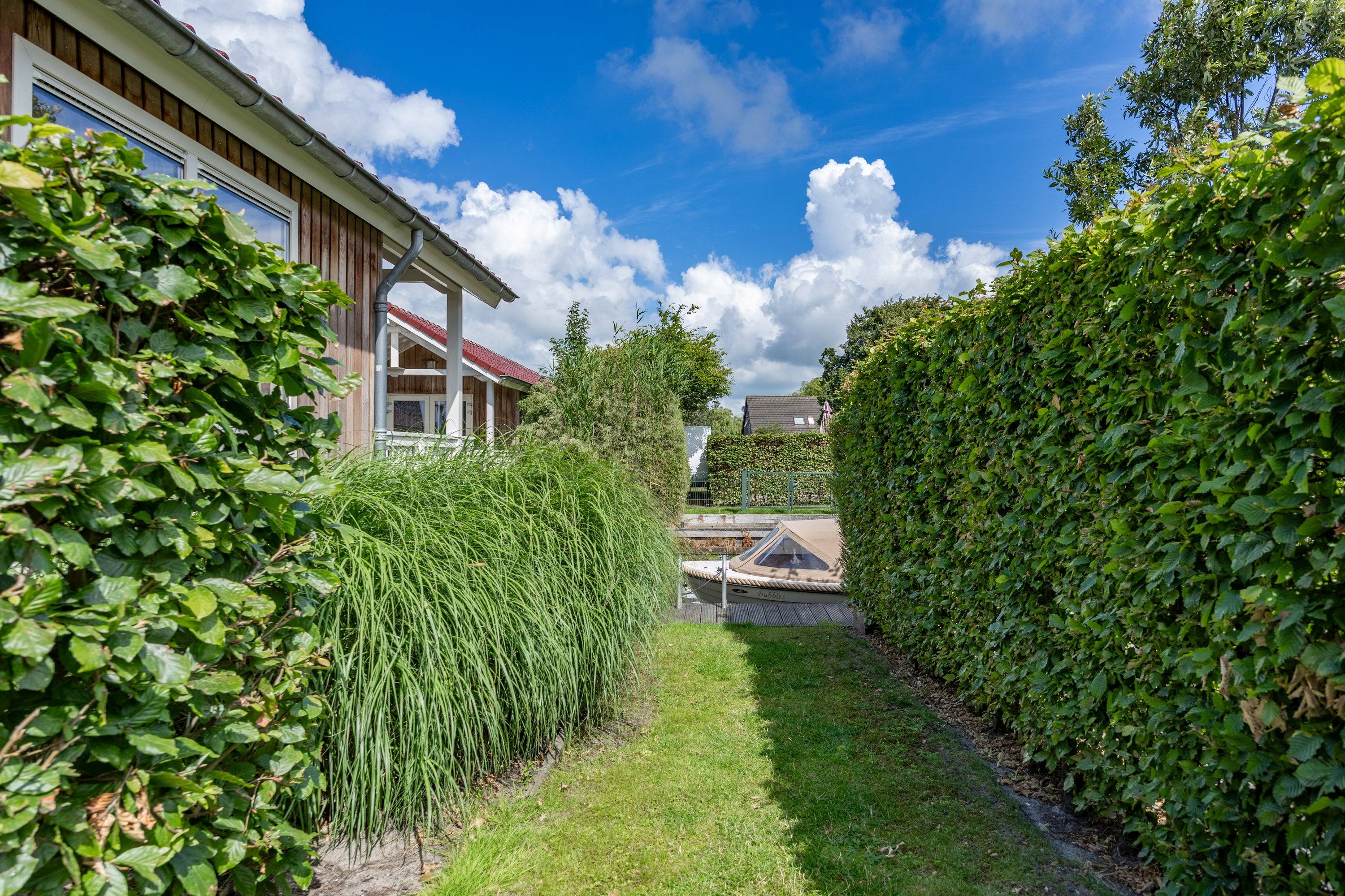 Er is een eigen parkeerplaats voor twee auto's. De beschutte tuin heeft een terras en een steiger voor een boot. Bijzonderheden zijn onder andere het bouwjaar van 2011, volledig gemeubileerd en een goede verhuurmogelijkheid.