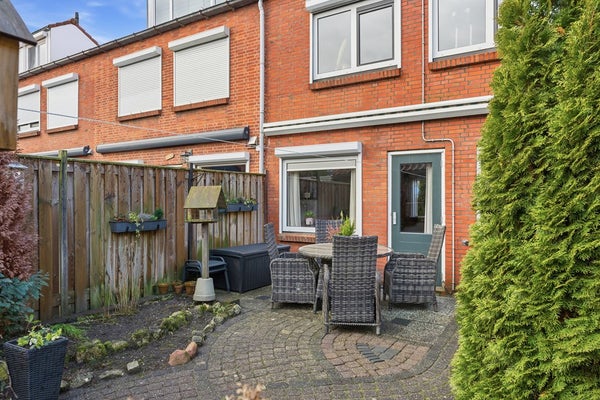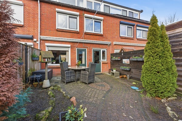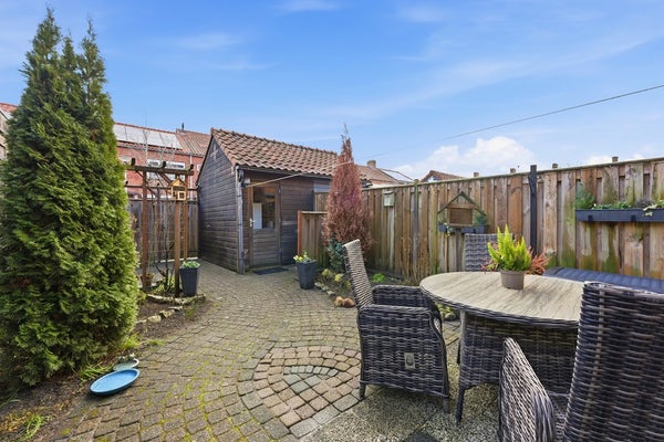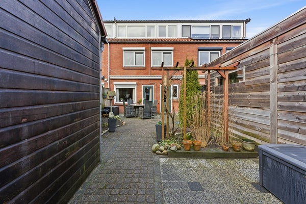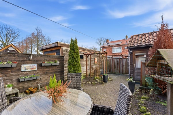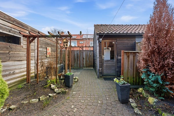 Achtertuin: De achtertuin (afm. ca. 10.67 x 5.64) is gelegen op het oosten en bereikbaar via een brede achterom, wat ideaal is voor iemand met een motor of fietsen. De tuin is zonnig en goed onderhouden, met voldoende ruimte voor een terras of groen. Er staat een grote schuur, geschikt voor opslag van fietsen, tuinmateriaal of andere spullen.