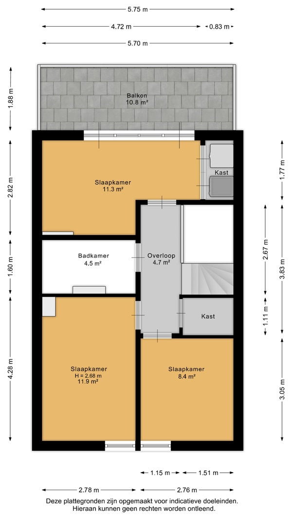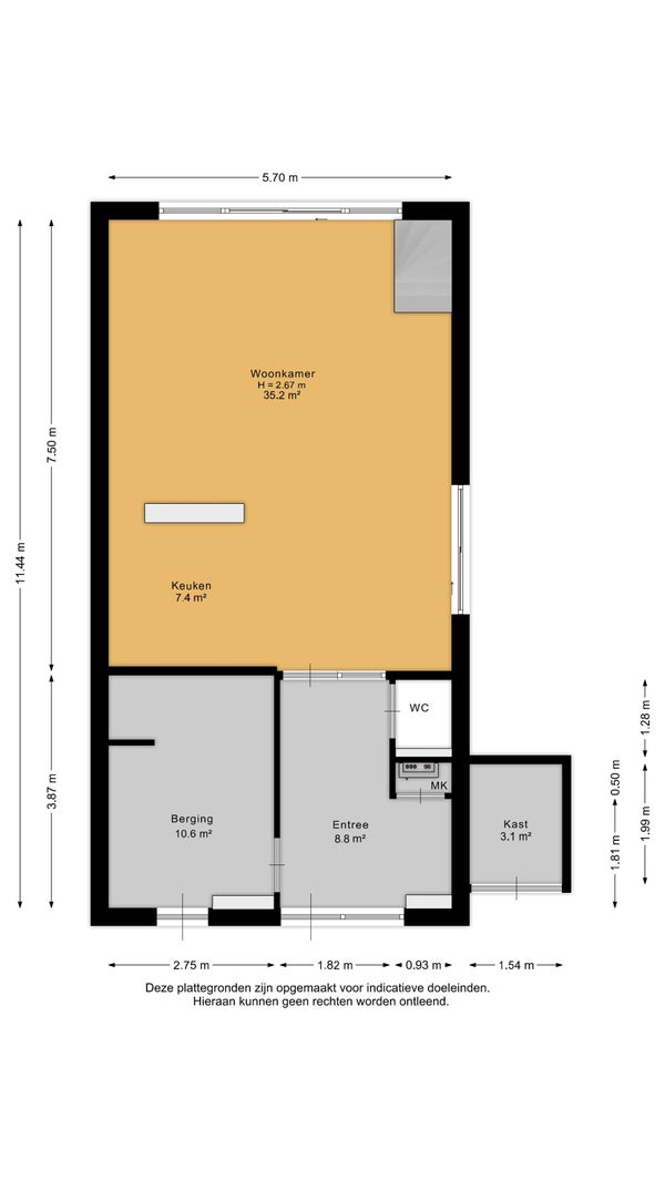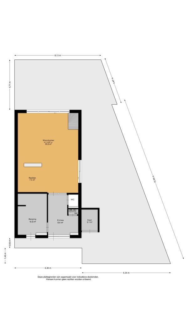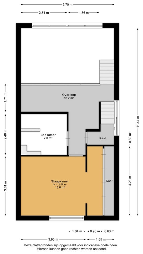 - Aanwezig (60 m², gelegen op het noordoosten)