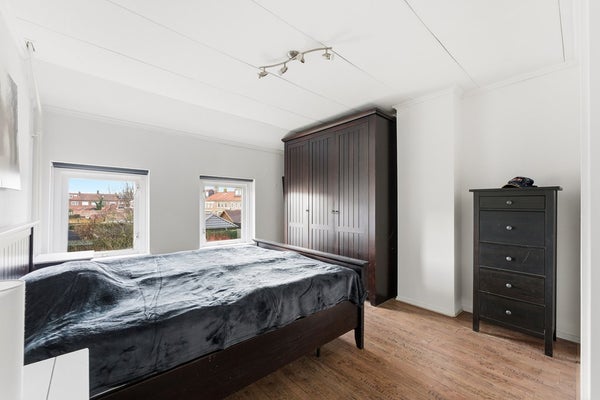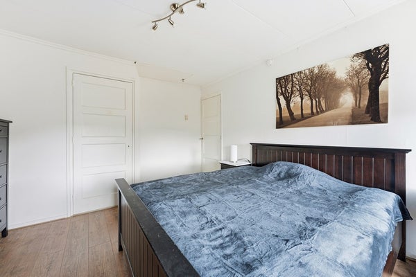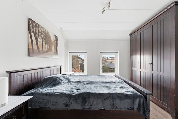 Slaapkamer 2: Ook slaapkamer twee ligt aan de achterzijde en is voorzien van een inbouwkast. De kamer kun je goed inrichten als master bedroom. Vanuit deze kamer bereik je via een vlizotrap de geïsoleerde bergzolder, wat extra bergruimte biedt. De kamer is afgewerkt met een laminaatvloer, behangwanden en een gips plafond.