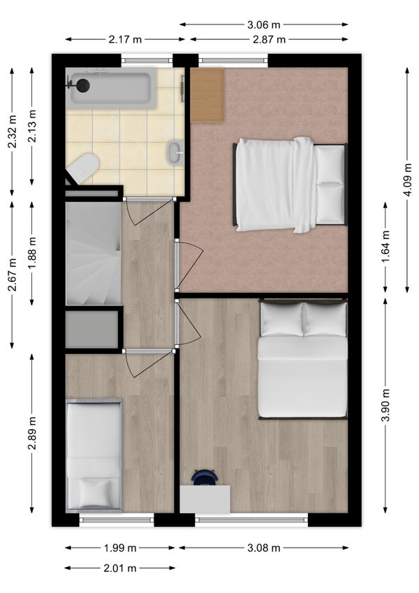 - De tussenwoning heeft een woonoppervlakte van 104 m² en beschikt over 5 kamers, waarvan 3 slaapkamers;