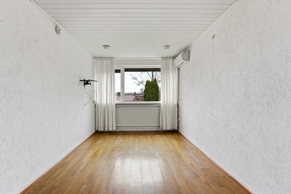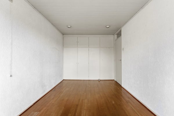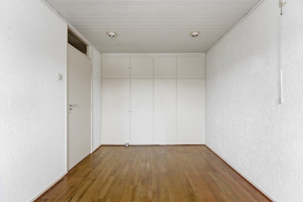 Slaapkamer 1: Aan de achterzijde van de woning vind je de eerste slaapkamer. Een fijne kamer die zich uitstekend leent als kinder-, werk- of kleedkamer. De ruimte is afgewerkt met vloerbedekking, granolwanden en een delenplafond.