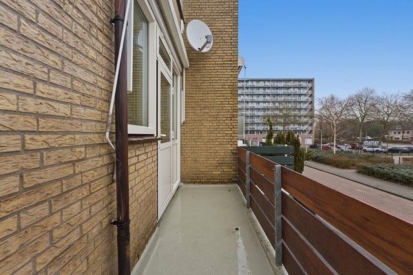 Balkon 2: Dit balkon ligt op het oosten, waardoor je hier heerlijk van de ochtendzon kunt genieten. Het balkon biedt vrij uitzicht over de straat en is eveneens voorzien van een zonnescherm.