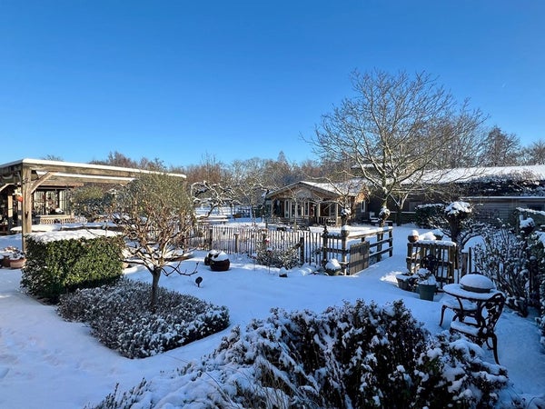 Tuinhuis: Het vrijstaande tuinhuis is volledig uitgevoerd in hout en voorzien van dubbelglas. Binnen vind je een haard, waardoor de ruimte aangenaam te verwarmen is, en een keukenblok met wateraansluiting. Elektra is aanwezig, waardoor je de ruimte optimaal kunt benutten. Het tuinhuis is multifunctioneel: ideaal om workshops te geven, creatieve hobby’s te beoefenen of er een mancave van te maken. Dankzij de praktische inrichting, de volledige isolatie en de gezellige sfeer van de haard is het een comfortabele plek om tijd door te brengen, ongeacht het seizoen.