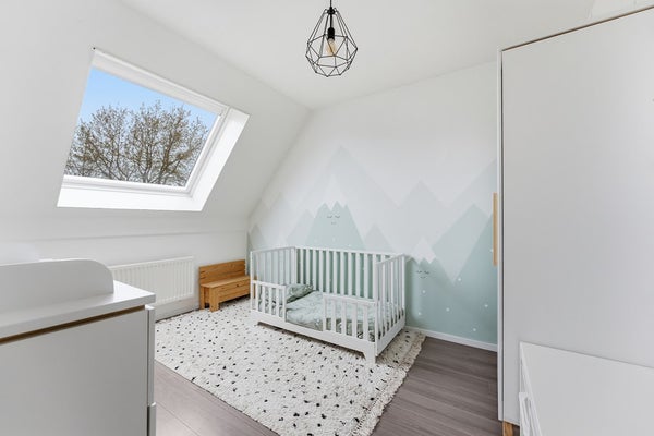 Slaapkamer 3: Aan de voorzijde bevindt zich de derde slaapkamer. Door de ligging aan de voorkant valt hier prettig daglicht naar binnen. De kamer is voorzien van een dakraam met hor en is groot genoeg voor een tweepersoonsbed. De afwerking bestaat uit laminaat, structuurwanden en een spuitwerkplafond.