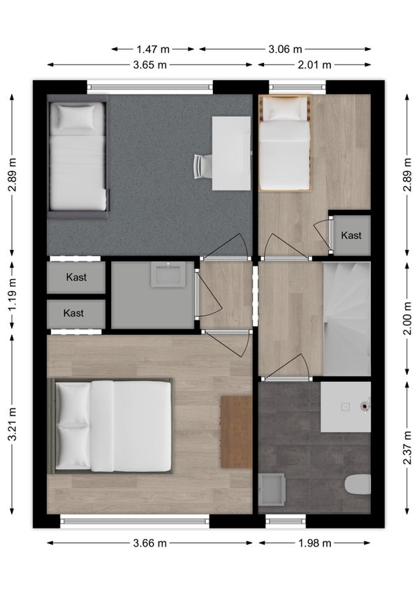 - De tussenwoning heeft een woonoppervlakte van 102 m² en beschikt over 5 kamers, waarvan 4 slaapkamers;