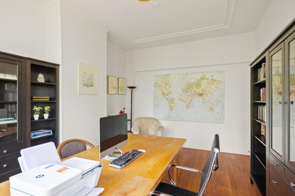 - De tussenwoning heeft een woonoppervlakte van 179 m² en beschikt over 8 kamers, waarvan 6 slaapkamers;