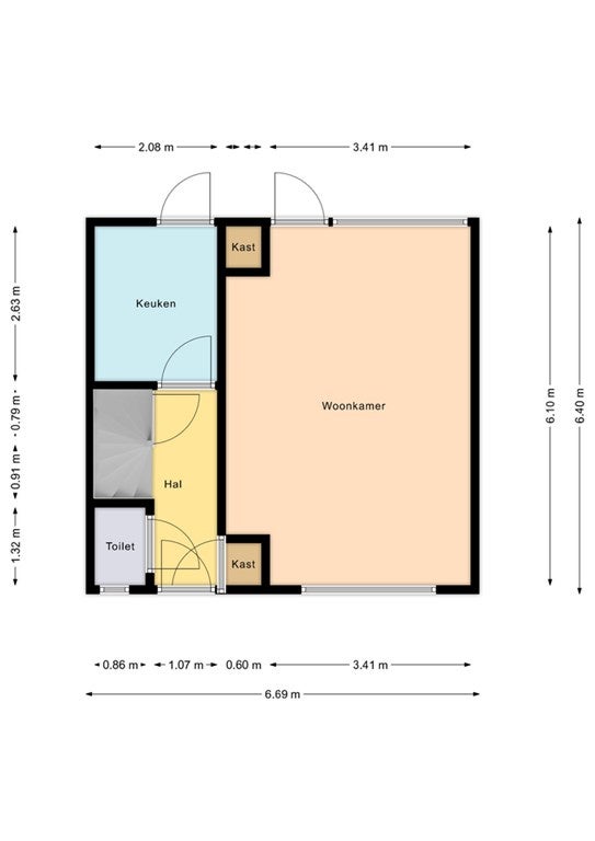 - De tussenwoning heeft een woonoppervlakte van 73 m² en beschikt over 4 kamers, waarvan 3 slaapkamers;
