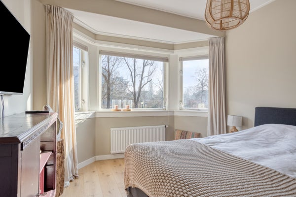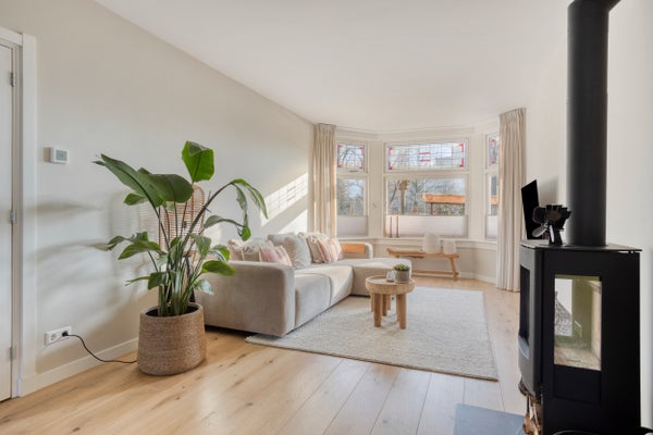 Achter de charmante gevel van deze erkerwoning schuilt een ruim, licht en comfortabel huis. Deze karaktervolle woning uit 1934 heeft in 2023 een volledige renovatie ondergaan en biedt een perfecte combinatie van historisch karakter en modern comfort. Op de begane grond kom je binnen via een robuuste voordeur in de hal met een mooie houten vloer die doorloopt in de woonkamer. De erker biedt vrij uitzicht over het groen en de sfeervolle houtkachel zorgt voor warmte. De royale woonkeuken, die is uitgebouwd, leidt naar een terras met overkapping. De achtertuin is gunstig gelegen en biedt privacy. De eerste verdieping herbergt twee grote slaapkamers, een werkkamer en een moderne badkamer. De tweede verdieping heeft nog twee ruime slaapkamers. De vliering biedt extra opbergruimte. Deze woning ligt centraal nabij het station en het centrum van Alkmaar.